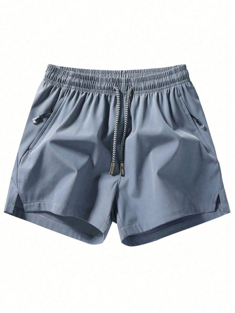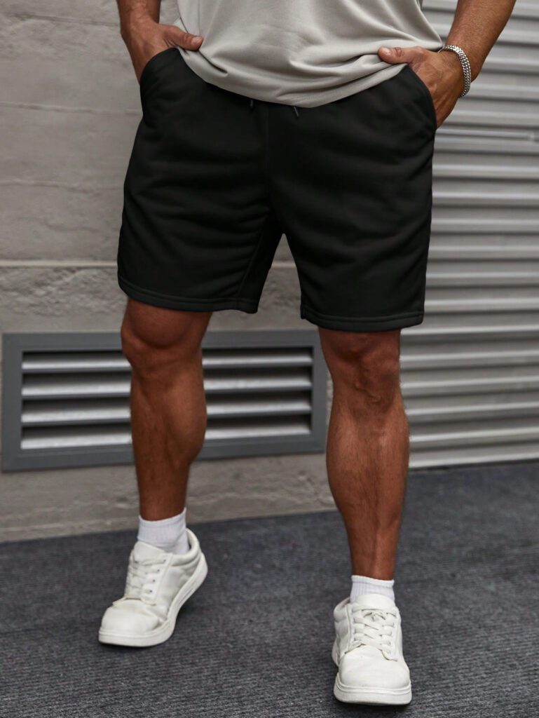 Short à cordon de serrage de taille pour hommes en couleur unie