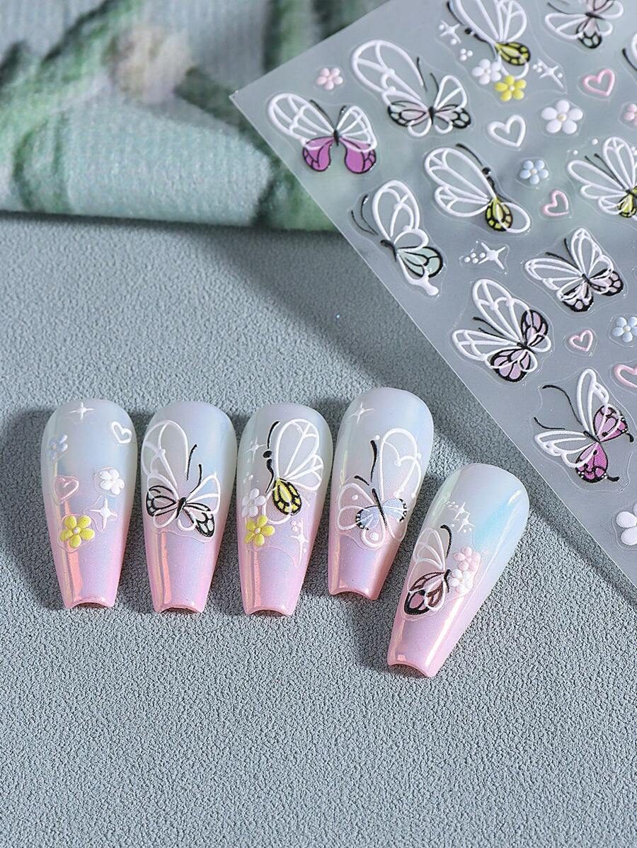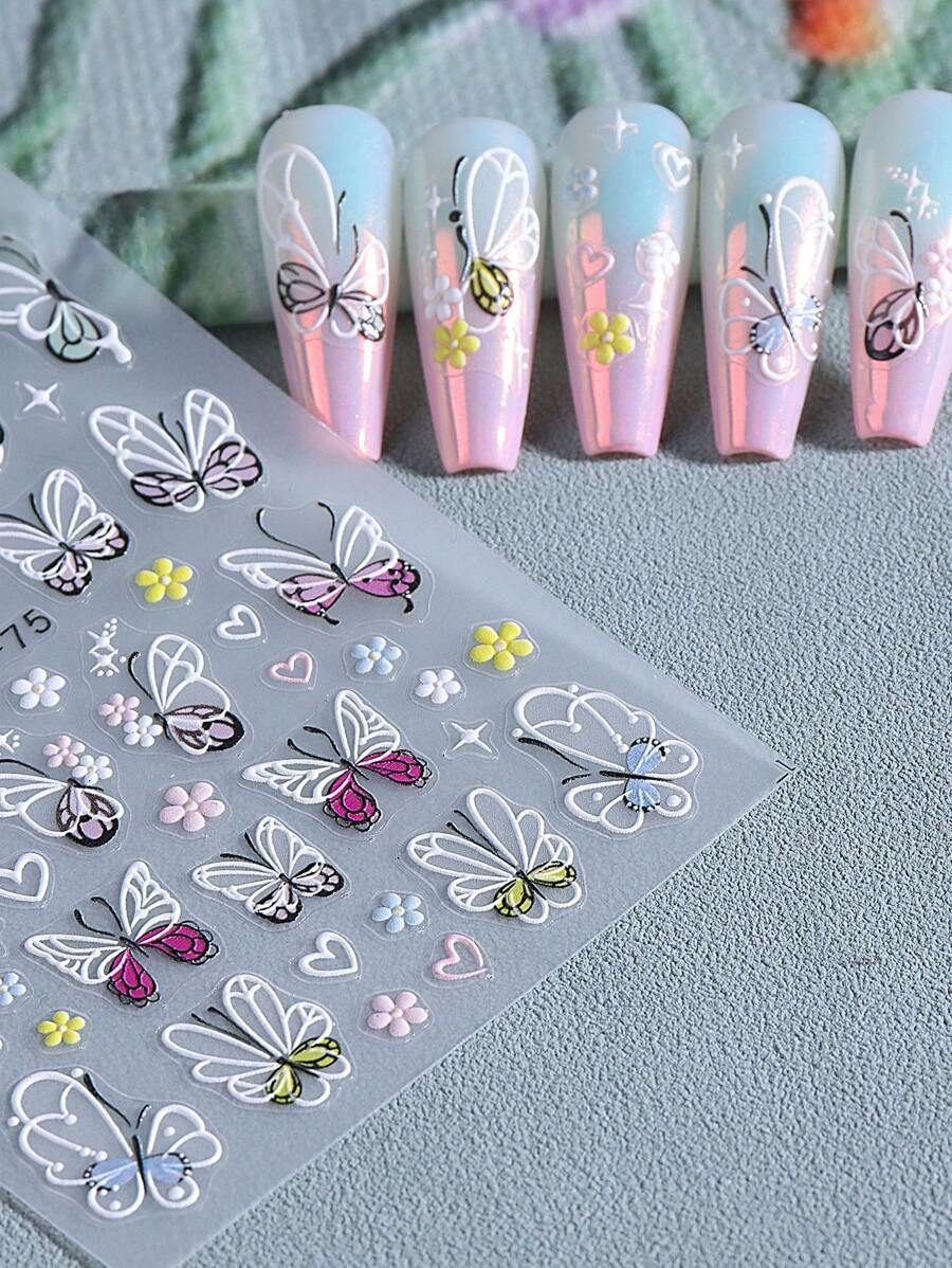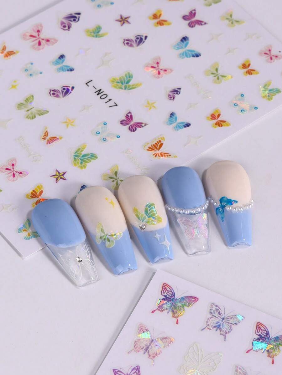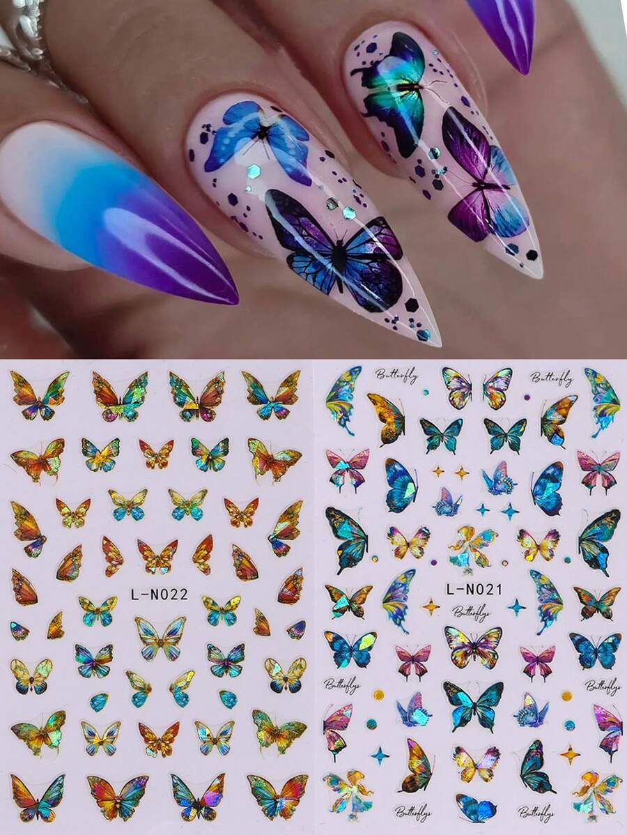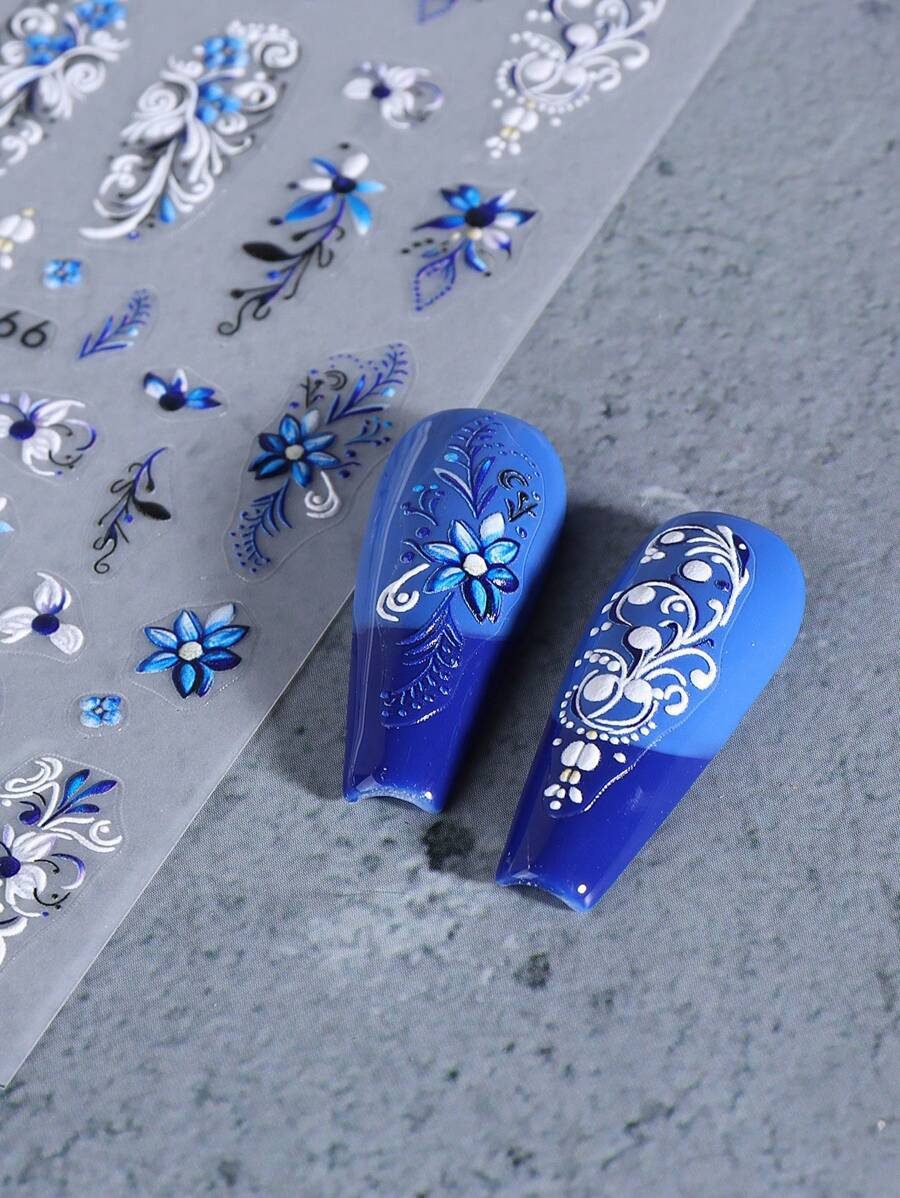 2 pièces Autocollants d’art pour ongles décalques 5D gaufrés à motifs de fleurs bleues. Designs d’art pour ongles avec fleurs dégradées, motifs de vignes et texture de pétales. Feuilles de recouvrement complet pour décoration des ongles. Accessoires de manucure.