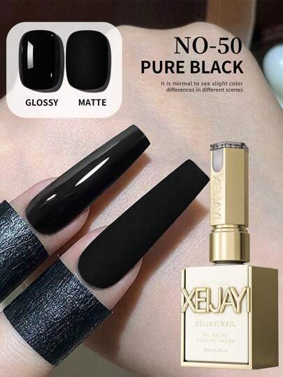 XEIJAYI 1 pièce Vernis à ongles liquide noir 15ml XEIJAYI, vernis à ongles UV LED brillant sans parfum, manucure française noire pure sans parfum pour salon DIY et nail art