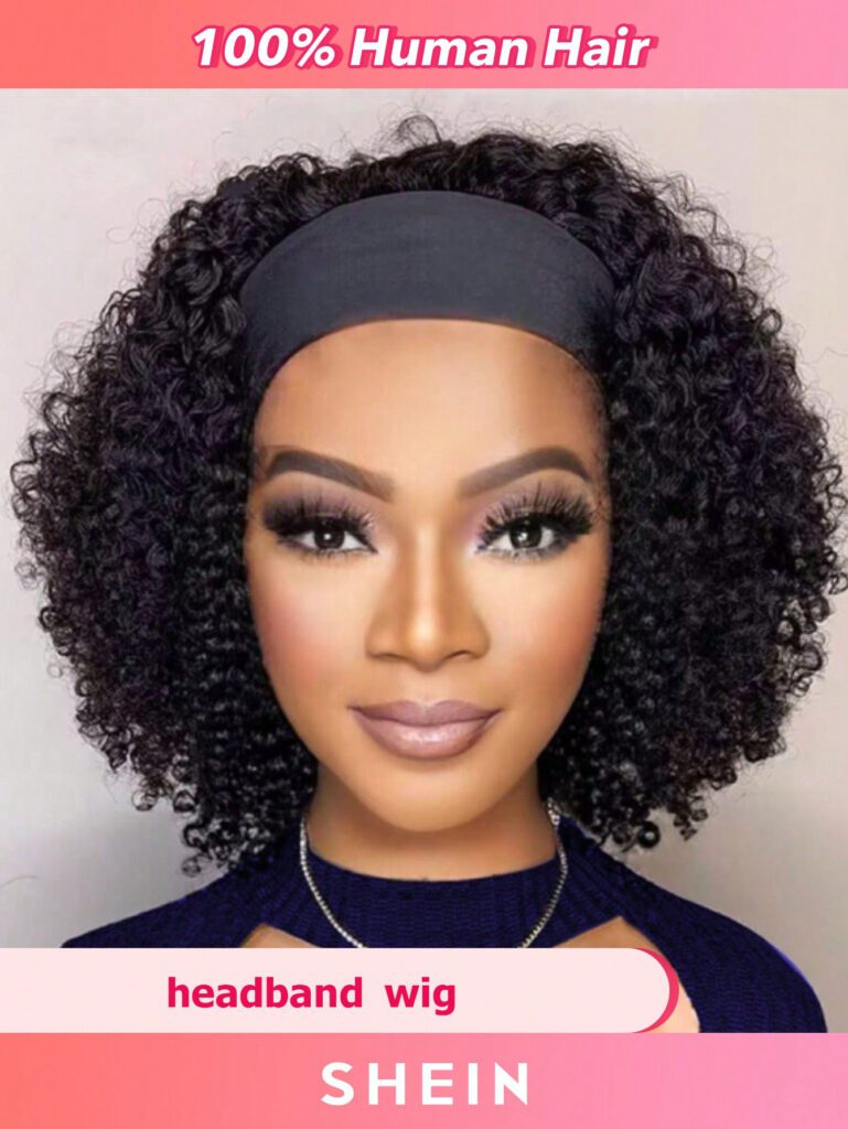 Crépue Bouclée Perruque Bandeau Naturel Noir Court Court Humain Cheveux Perruque Bouclée Fait À La Machine Sans Perruque Avec Dentelle devant en dentelle Perruque human hair
