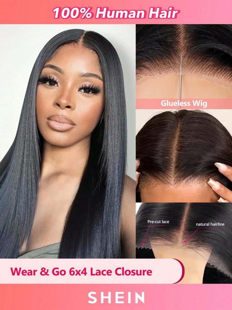 Perruque droite prête à porter sans colle, densité de 180, perruque avec fermeture de dentelle 4×6, perruque cheveux naturels pré-coupée prête à porter pour femmes