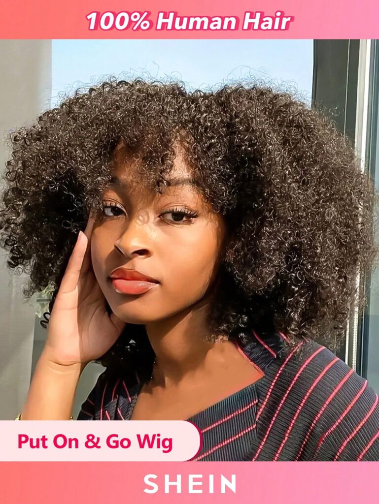 Perruque en cheveux humains à vague bouclée afro Kinky pour débutants, sans colle, de forme V, boucles Kinky. Apparence naturelle parfaite de 10 à 20 pouces.