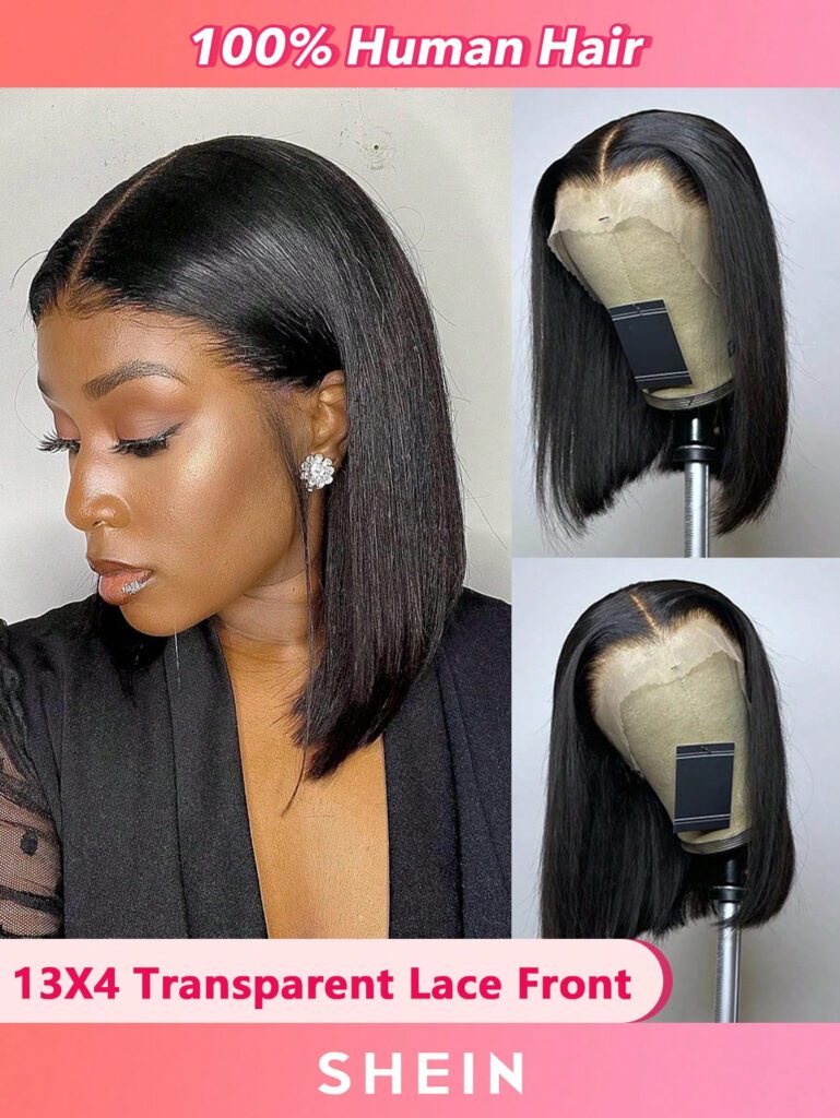 3 avis pour Perruques En Cheveux Humains Yaki Straight Bob 4×4 Fermeture À Lacets Perruque Courte En Cheveux Humains Avec Frange