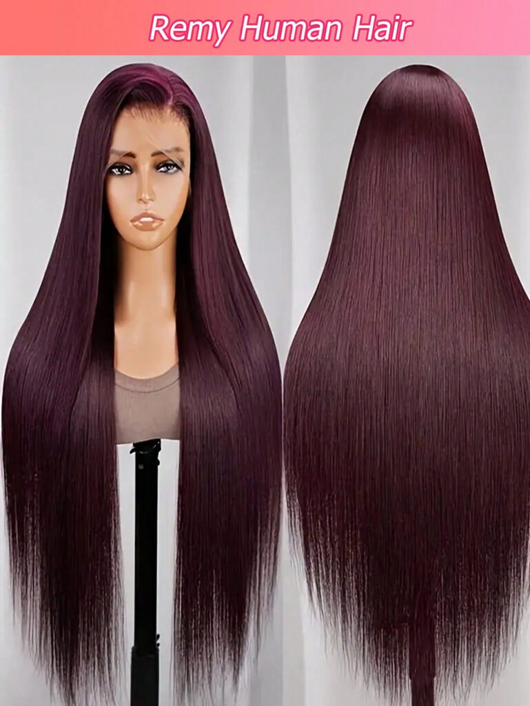 Perruque frontale en dentelle de cheveux humains à 180% de densité, droite et de couleur 99j bordeaux foncé. Perruque frontale en soie droite 13×4 en cheveux humains. Perruques frontales en cheveux humains brésiliens vierges pré-épilés, de couleur rouge vin, pour femmes (longueur 16-30 pouces)