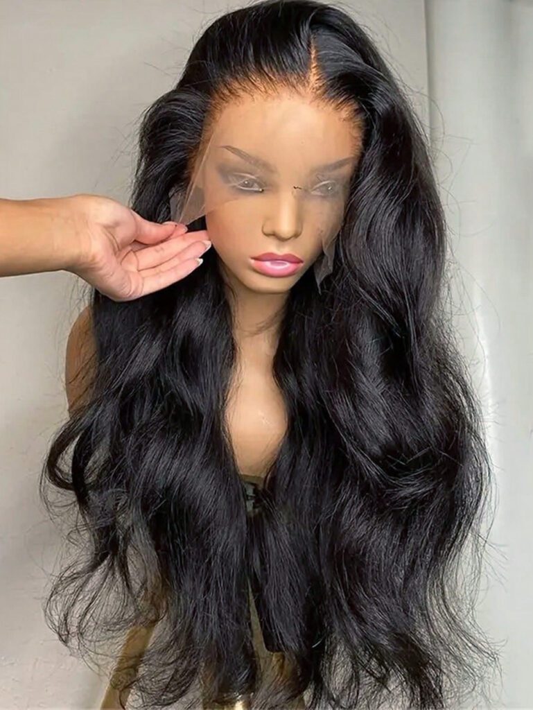 Perruque lace front onde de corps 13×4 en cheveux humains de 12-28 pouces, frontal transparent de densité 180% pour une couleur naturelle