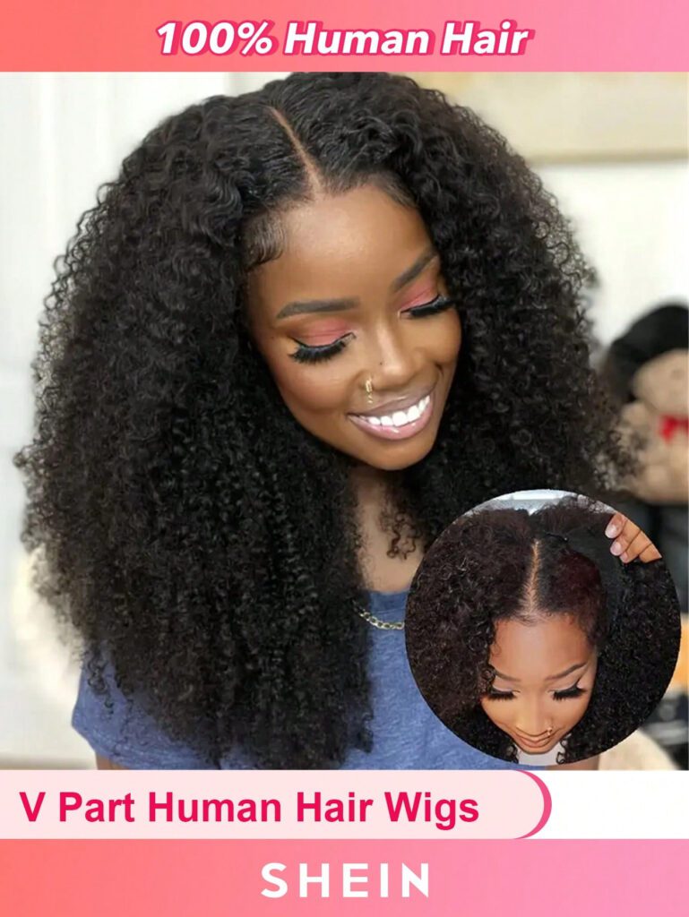 Perruque en cheveux humains à vague bouclée afro Kinky pour débutants, sans colle, de forme V, boucles Kinky. Apparence naturelle parfaite de 10 à 20 pouces.