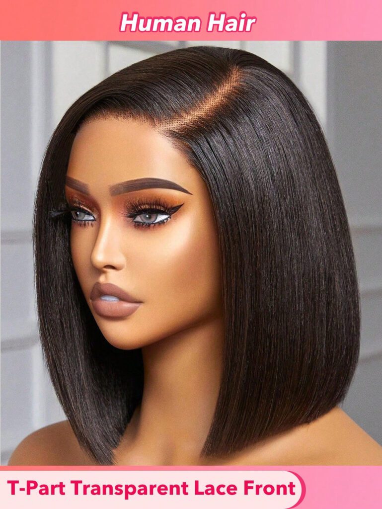 Perruque BOB courte à vendre, perruque frontale en dentelle T, cheveux humains brésiliens pré-peignés pour femmes, perruque sans colle en cheveux humains 180%