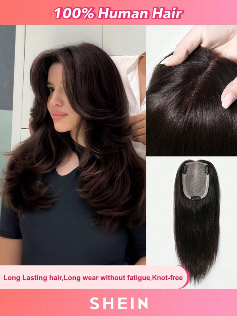 Postiches naturels noirs pour femmes, pièces de cheveux humains réels pour femmes avec des cheveux clairsemés, postiches de cheveux en dentelle, extensions de cheveux clip-in