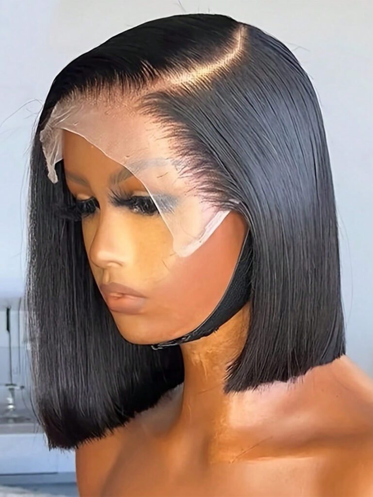 femme Perruque BOB courte, perruque Bob à raie sur le côté, perruque frontale en dentelle alignée cuticule pré-pincée, cheveux brésiliens naturels pour , densité de 180% de cheveux naturels