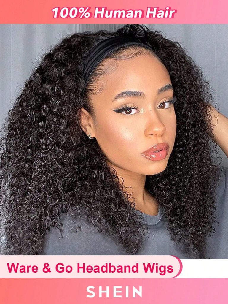 Perruque bandeau bouclée afro crépue en cheveux humains, densité de 150 %, perruques afro pour femme, perruques bandeau bouclées sans colle, demi-perruques pour femmes, couleur naturelle