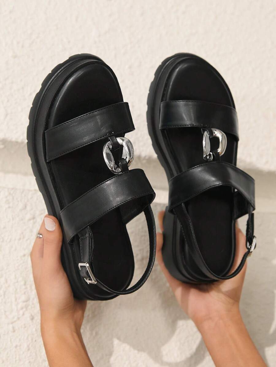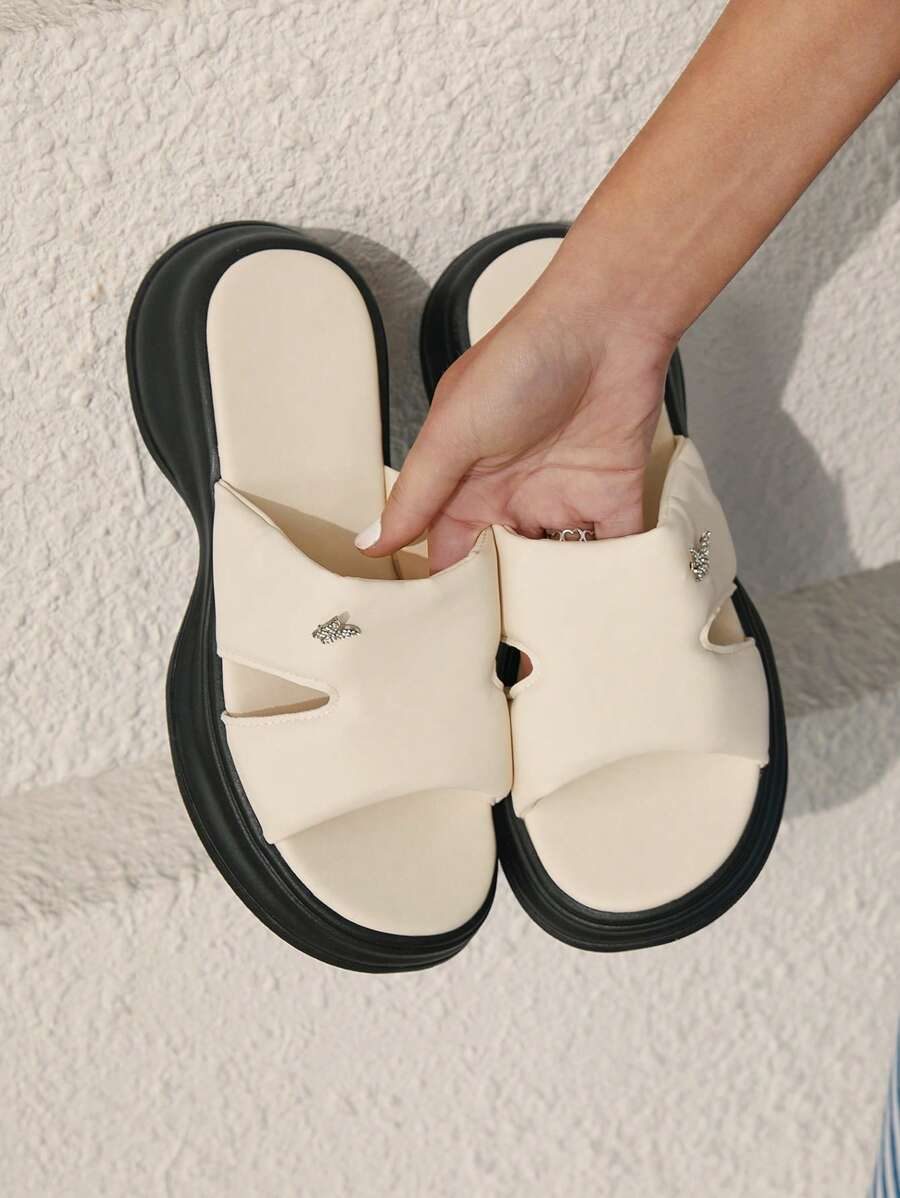 Pantoufles De Talon Compensé Noires Pour Femme Avec Style De Vacances Simple Et Décontracté À La Mode
