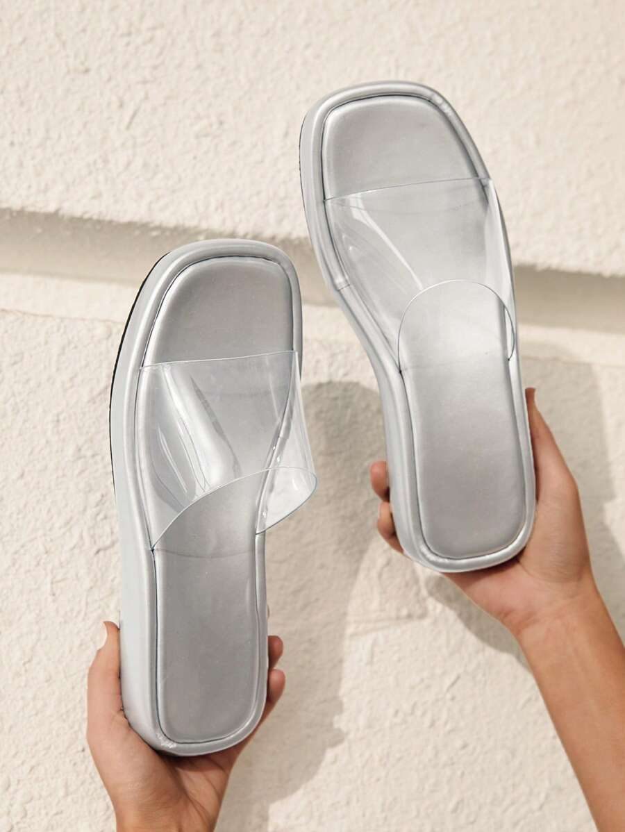 SHUZIA Mules à talon compensé transparent pour femmes, sandales à bout ouvert