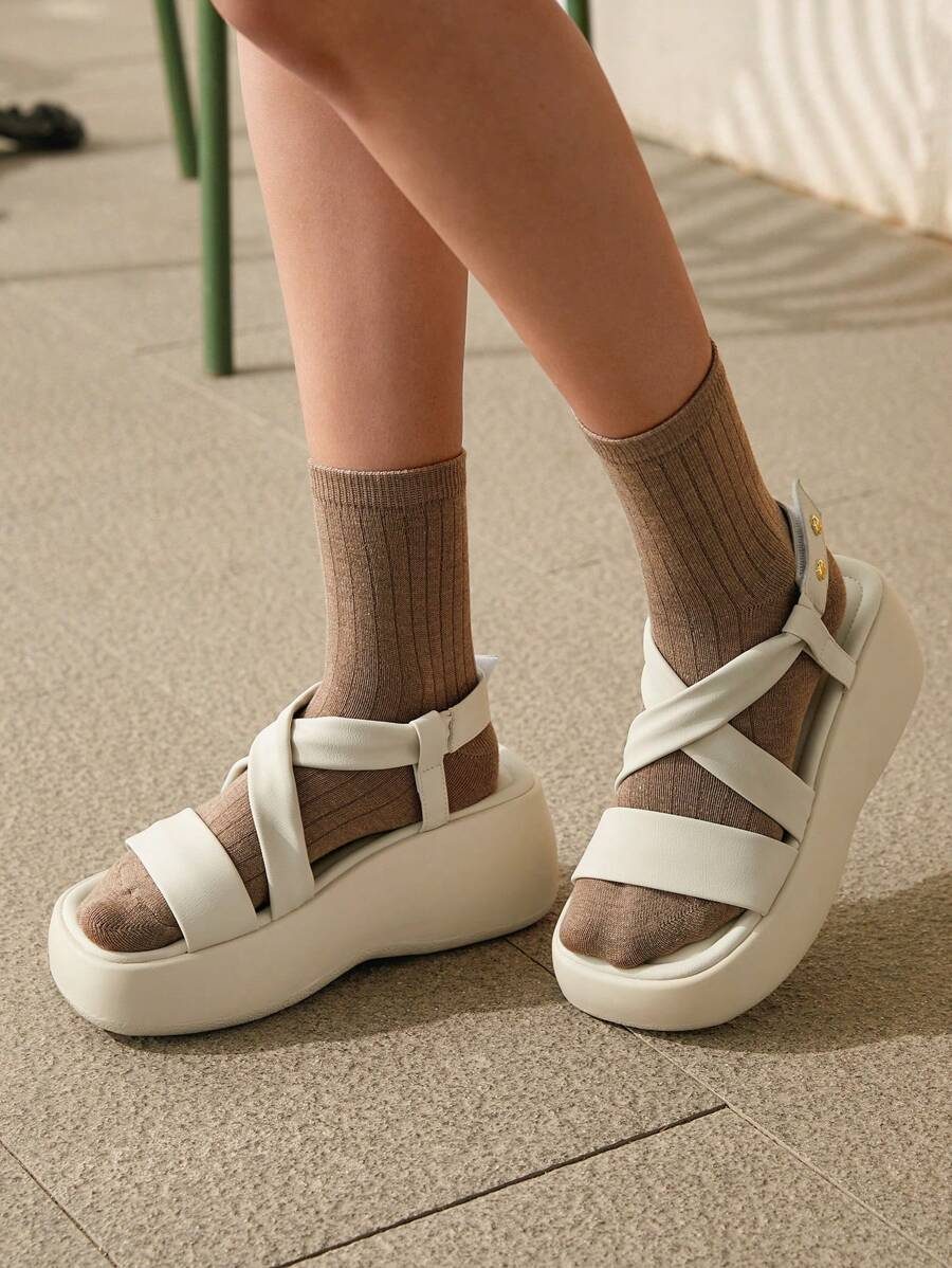 HighSole Sandales à plateforme plates élégantes et transparentes à lacets, style britannique casual polyvalent pour femmes. Semelle extérieure élevée, tenues de style printemps, élégantes pour l’Aïd, confort facile bohème, vacances urbaines, gala estival