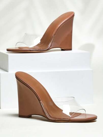 SHUZIA Mules à talon compensé transparent pour femmes, sandales à bout ouvert
