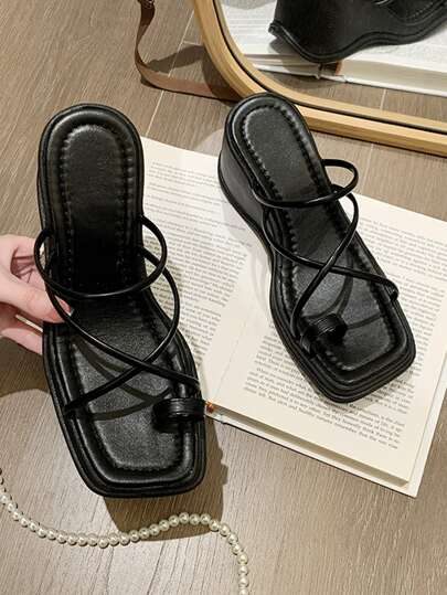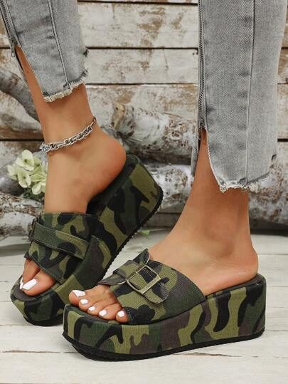 Sandales et nu-pieds d’été pour femmes avec boucle, plateforme et semelle épaisse, style décontracté, à enfiler