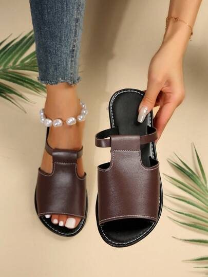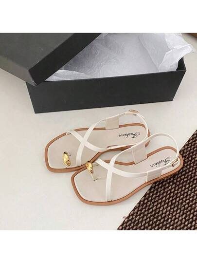 Sandales plates décontractées pour femmes, sandales ouvertes de style coréen, sandales romaines tressées pour le printemps et l’été, sandales plates à la mode françaises à porter avec des robes, conviennent pour la plage, l’été à la maison, sandales plates marron