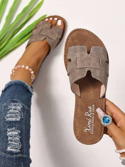 Nouvelles sandales plates noires à découpe en H : bout carré, design confortable sans laçage, parfait pour les jours de plage et les sorties décontractées – Sandales noires à boucle en H pour l’été 2025 : sandales plates , polyvalentes et pour les adolescentes et les femmes, chaussures d’été quotidiennes