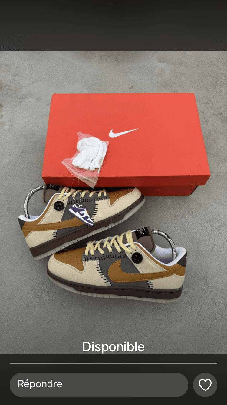 🎨 DĂ©couvrez l’originalitĂ© Ă vos pieds avec ces Nike Dunk Low Patchwork 🧵 ! Un design unique fait de coutures apparentes et de textures variĂ©es qui donnent Ă chaque paire une touche artisanale inimitable. Associez style et confort tout en faisant une dĂ©claration de mode audacieuse . Ces baskets sont un must pour les amateurs de look urbain et crĂ©atif 🚀.
