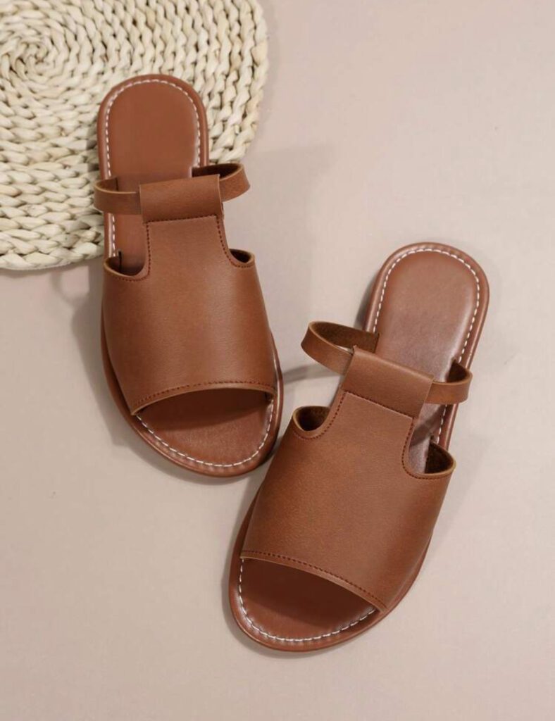 Sandales plates découpées à bande unique pour femmes, sandales plates extérieures minimalistes unicolore et élégantes