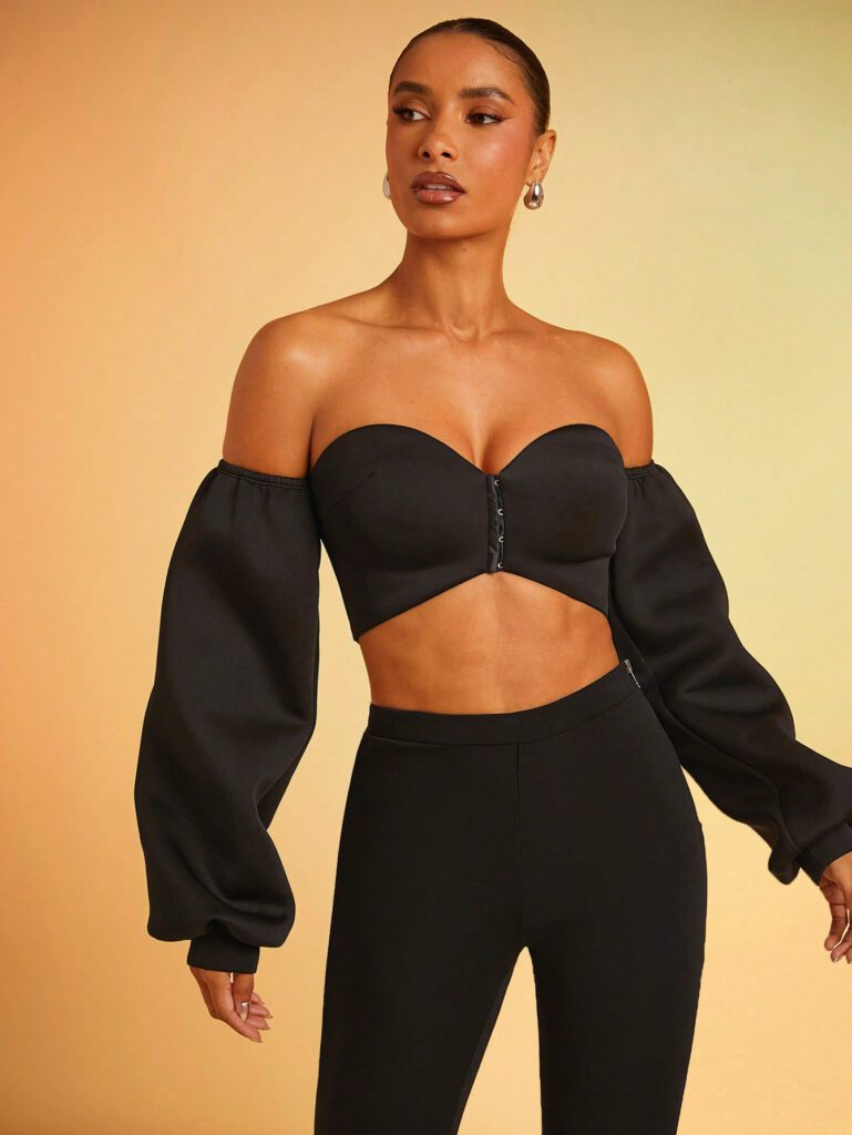 SHEIN SXY Top court à col asymétrique et drapé, sexy