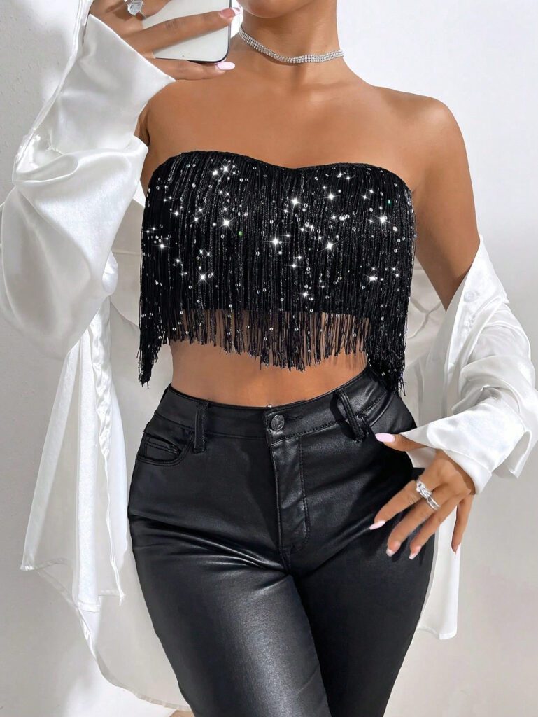 SHEIN Allurite Top tube court avec franges pour vêtements de fête de vacances