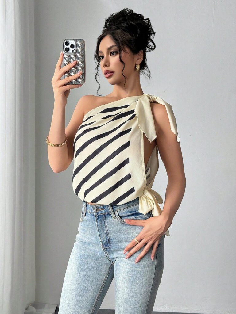 SHEIN SXY Top court à col asymétrique et drapé, sexy