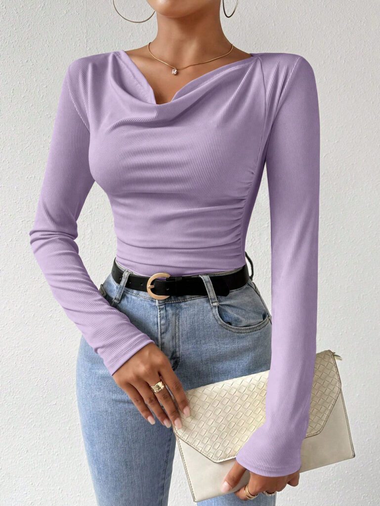 SHEIN Raffinéa T-shirt unicolore à ruché à col asymétrique