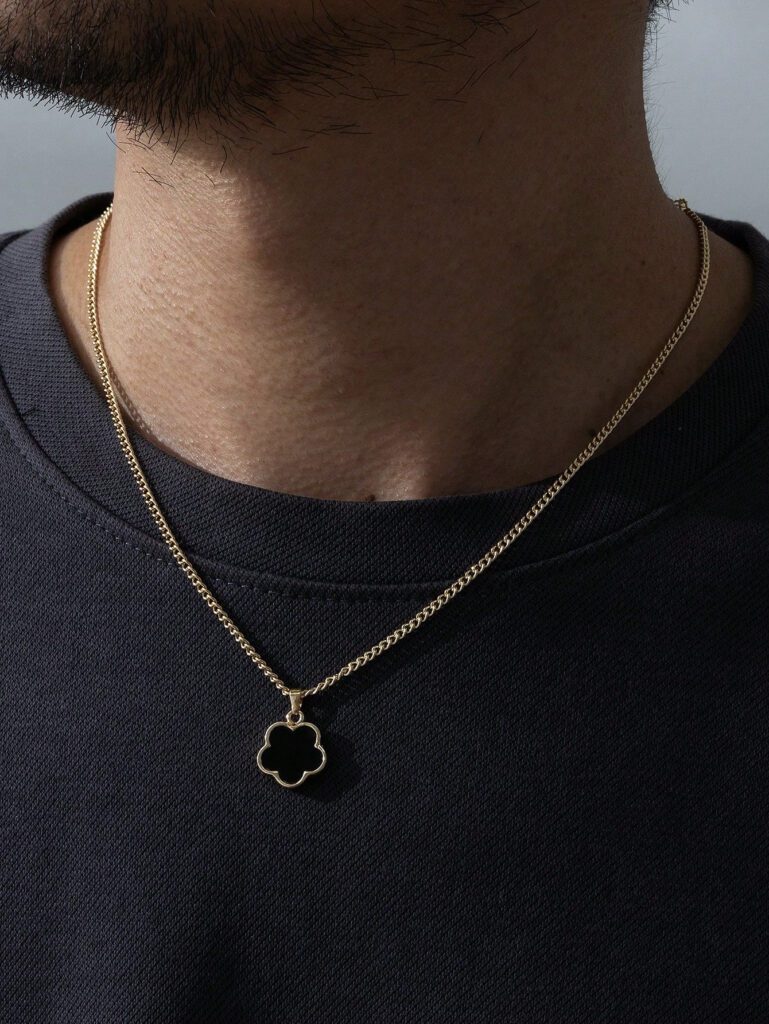 1 pièce Collier pendentif à trèfle à quatre feuilles noir à la mode pour homme, excellent cadeau pour la Saint-Valentin