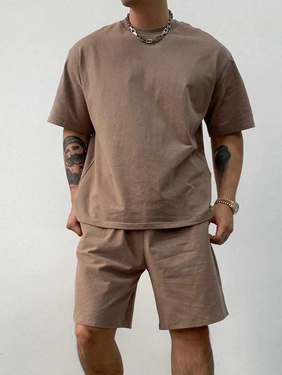 DAZY T-shirt décontracté marron unicolore pour hommes, coupe regular, été