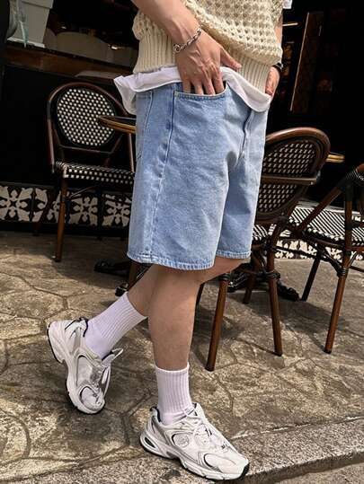 DAZY Shorts en jean unicolore pour hommes pour l’été, jorts décontractés pour la vie quotidienne