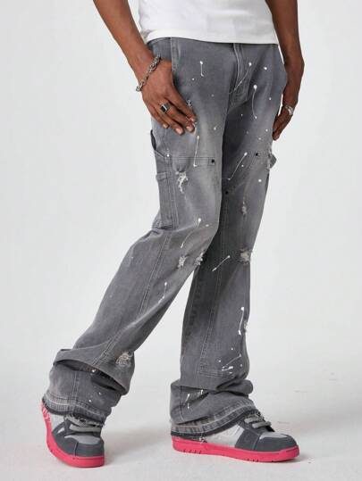 Jeans bleu clair ample et décontracté, style streetwear mode homme