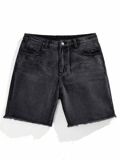 SWAVVY Shorts en jean décontractés basiques et plissés pour hommes avec ourlet brut