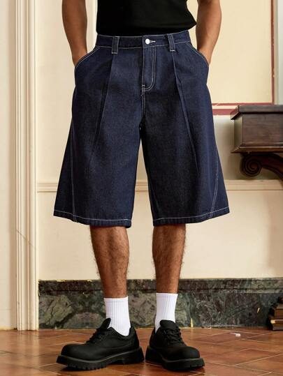 SWAVVY Shorts en jean décontractés basiques et plissés pour hommes avec ourlet brut