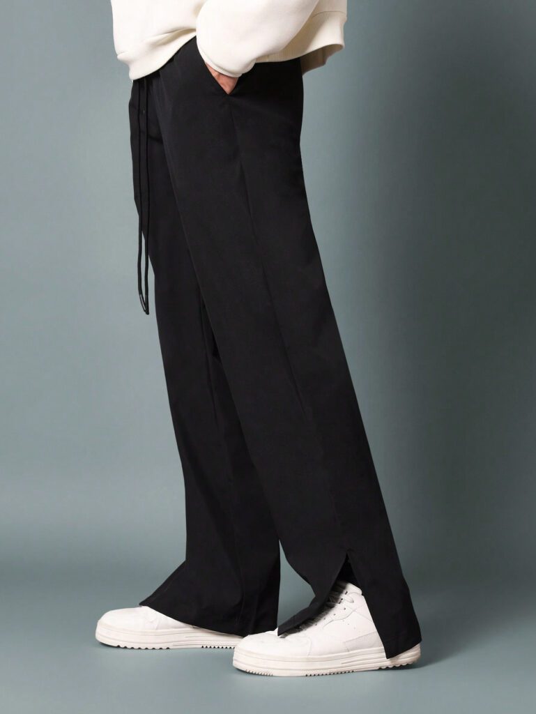 SUMWON Pantalon en nylon évasé avec ourlet fendu et cordons de serrage