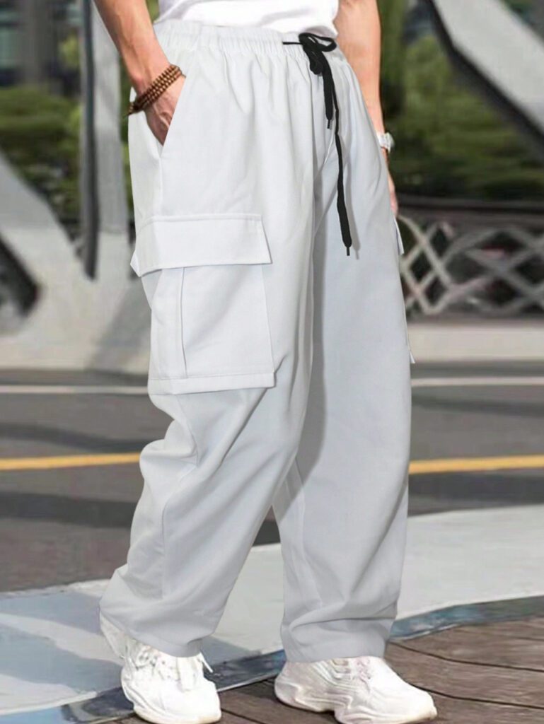 Manfinity Pantalon cargo homme avec cordon de serrage à la taille, pantalon ample Y2k, pantalon ample pour hommes Y2k
