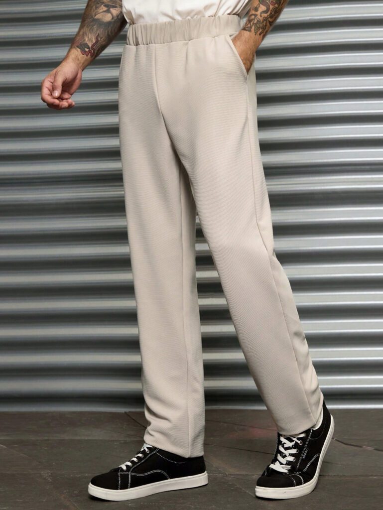 Manfinity ModaGents Pantalon droit pour homme, coupe décontractée et relâchée, en couleur unie avec taille élastique