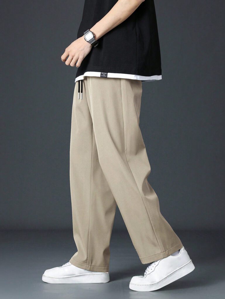 Manfinity ModaGents Pantalon droit pour homme, coupe décontractée et relâchée, en couleur unie avec taille élastique