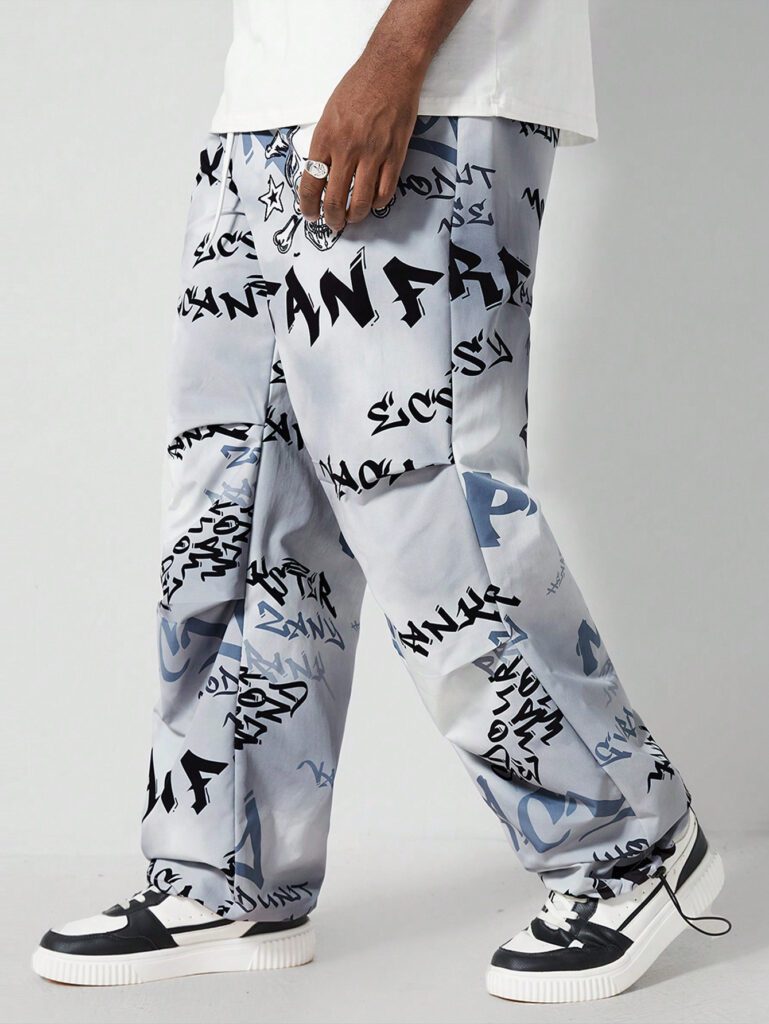 ROMWE Street Life Pantalon de parachute casual ample à cordon de serrage avec imprimé lettres pour hommes