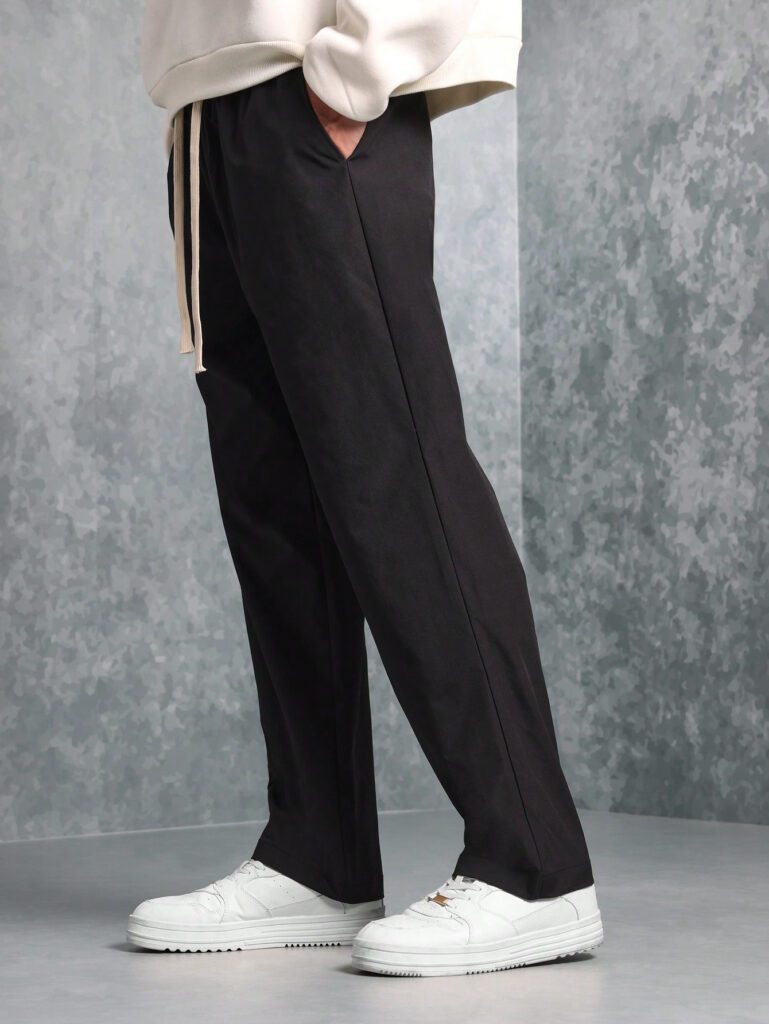 Manfinity Homme Pantalon casual ample et droit avec cordon de serrage à la taille et poches, couleur unie pour hommes