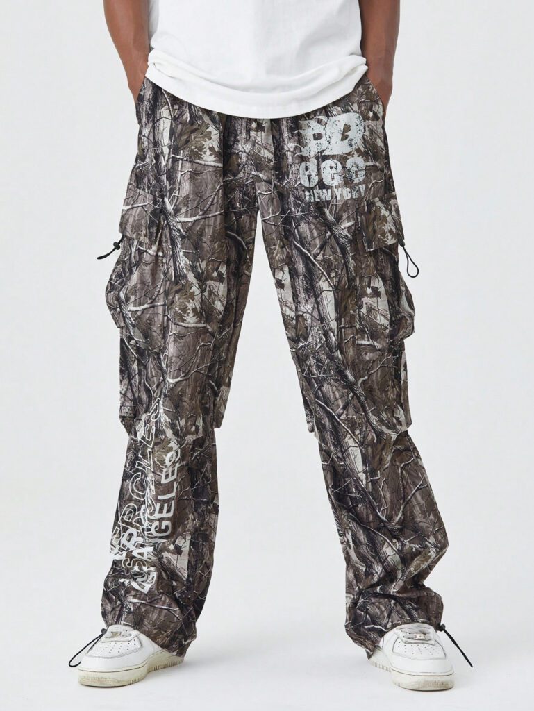 ROMWE Street Life Pantalon cargo à imprimé de branche mode pour hommes