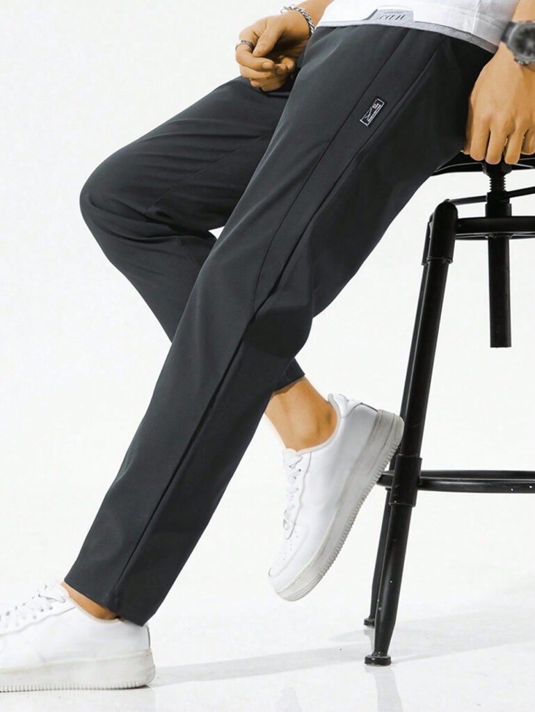 Manfinity Homme Pantalon Pour Homme À Jambe Droite Ample Avec Patchs De Lettres Et Taille À Cordon