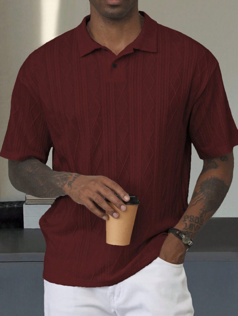 2 avis pour Musero Polo à manches courtes en tissu éponge, style de rue estival, vacances, décontracté chic