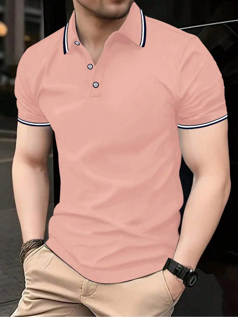 Manfinity Bizformal Chemise polo d’été décontractée pour hommes avec col, boutonnage à demi-patte et garniture contrastée, pour le travail et les loisirs