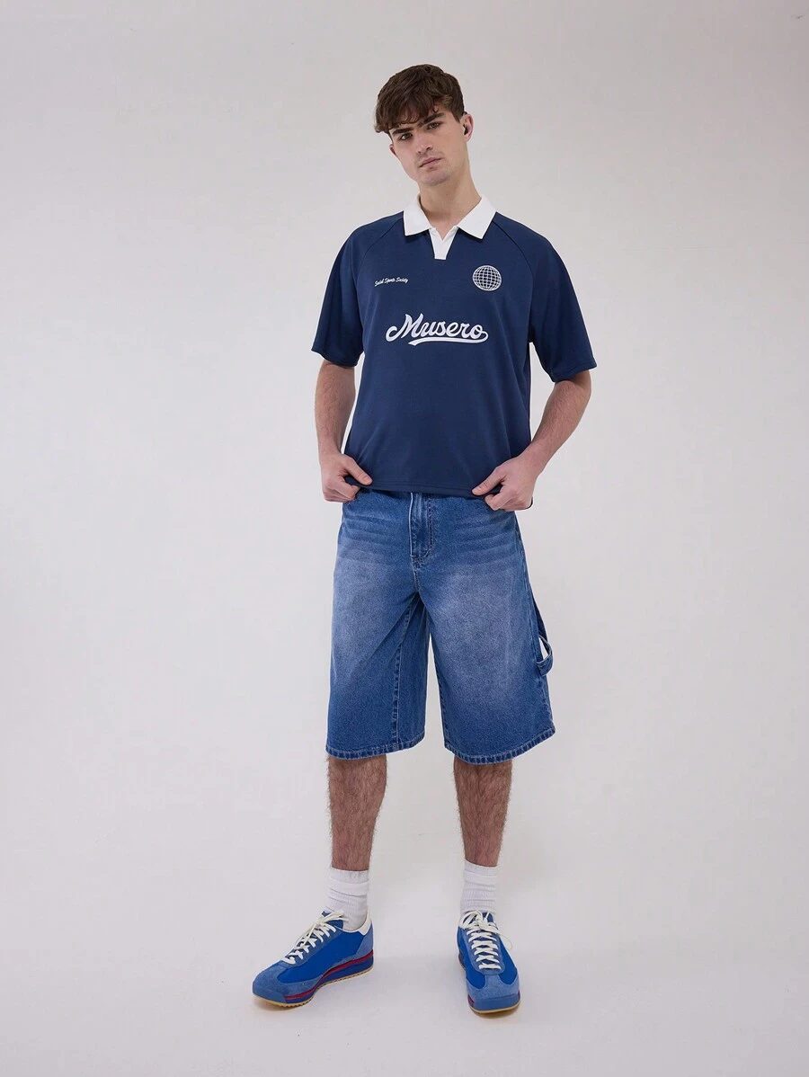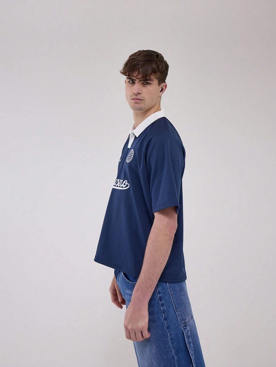 Manfinity Mode Chemise Polo À Manches Courtes À Boutons Avant Pour Homme De Couleur Unie