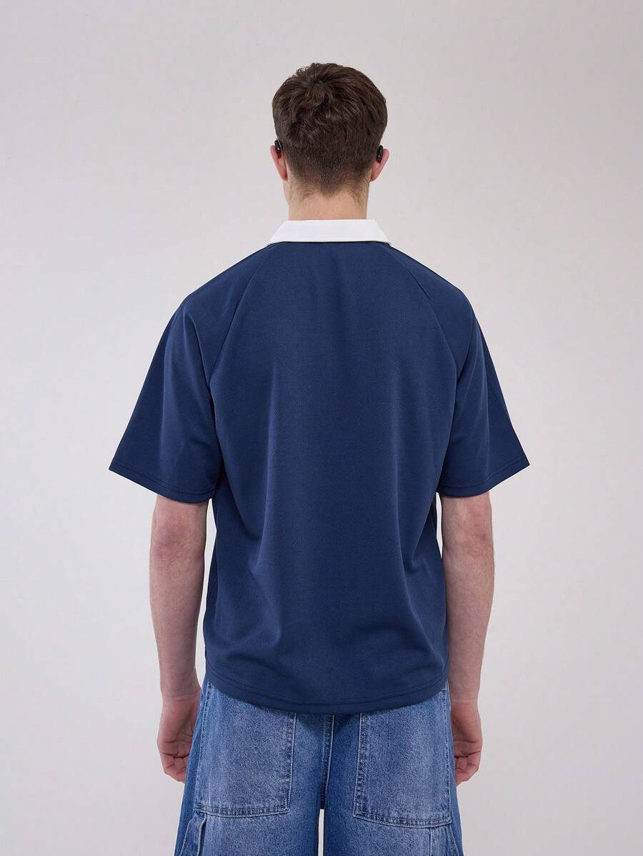 Manfinity Bizformal Chemise polo d’été décontractée pour hommes avec col, boutonnage à demi-patte et garniture contrastée, pour le travail et les loisirs