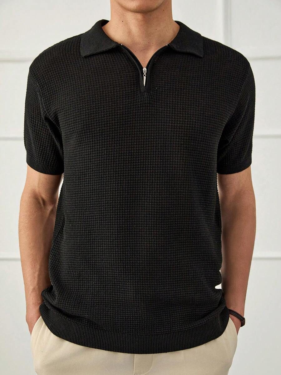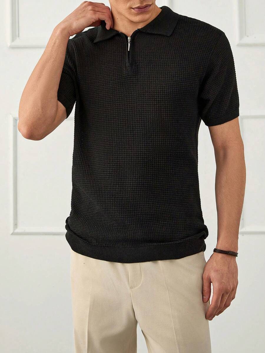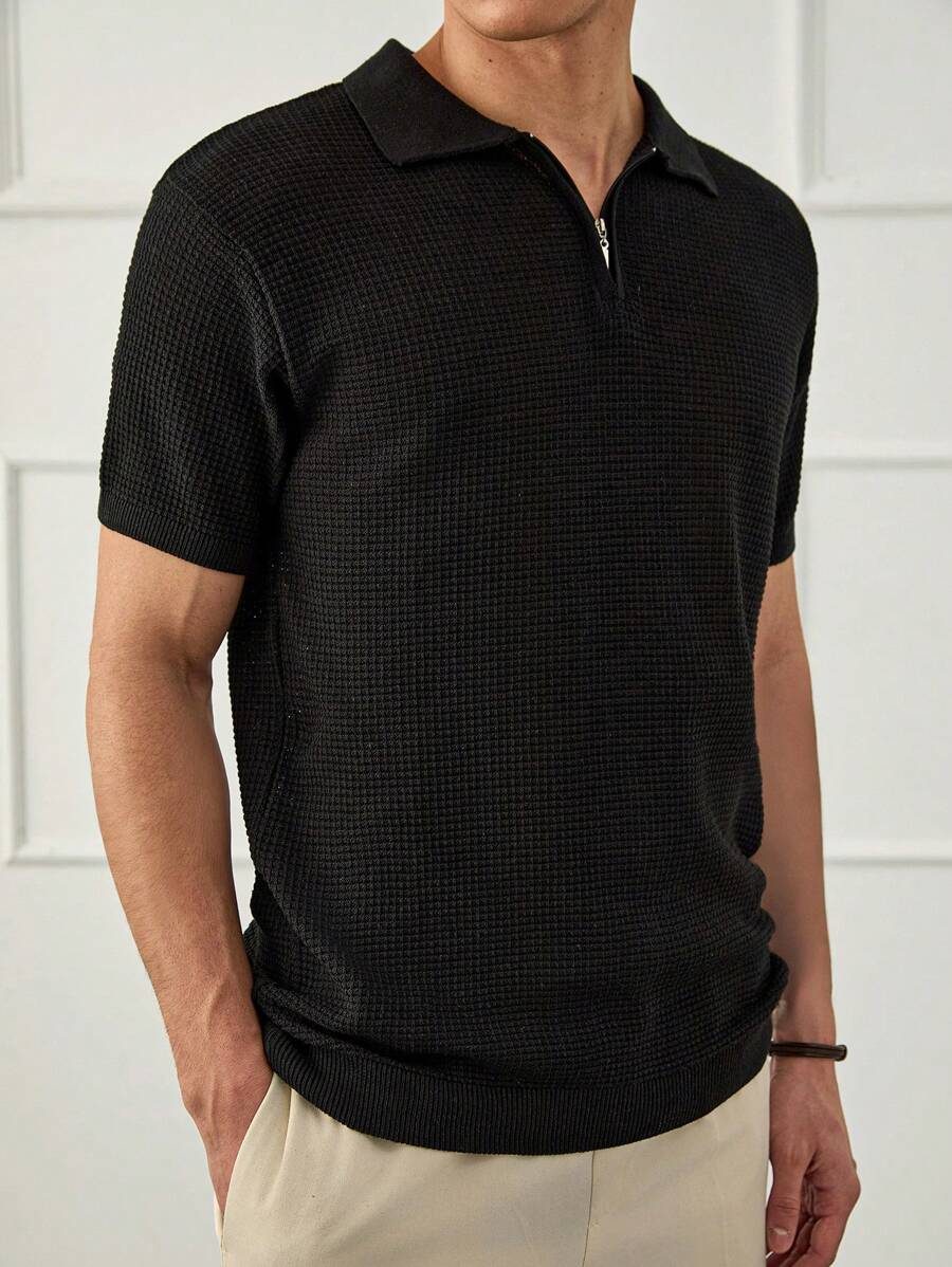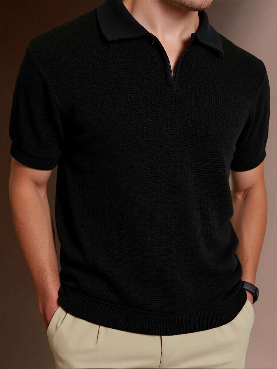 RueChic Polo à demi-zip standard à texture unie pour hommes