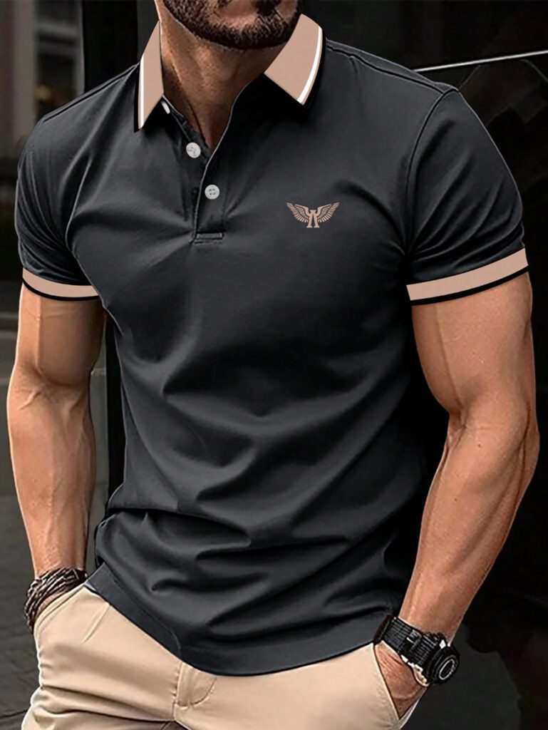 Manfinity Bizformal Chemise polo d’été décontractée pour hommes avec col, boutonnage à demi-patte et garniture contrastée, pour le travail et les loisirs