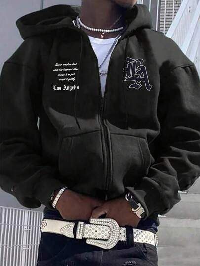 Sweat-shirt à capuche à cordon de serrage avec poche, manches longues, style japonais graphique, décontracté pour homme