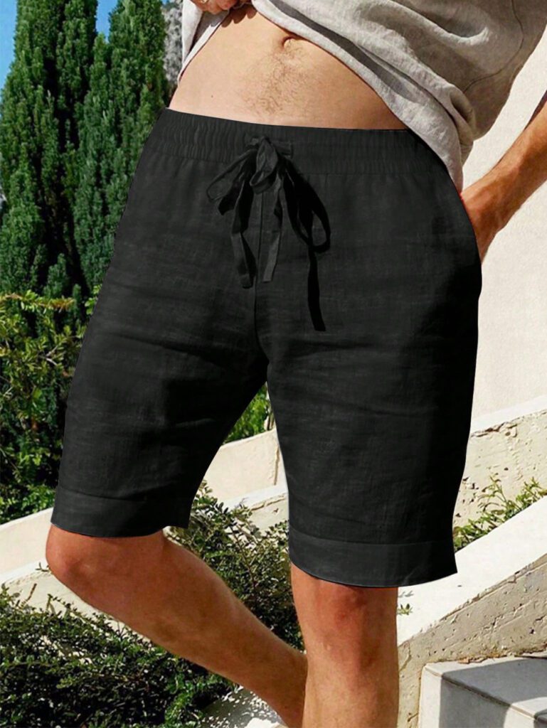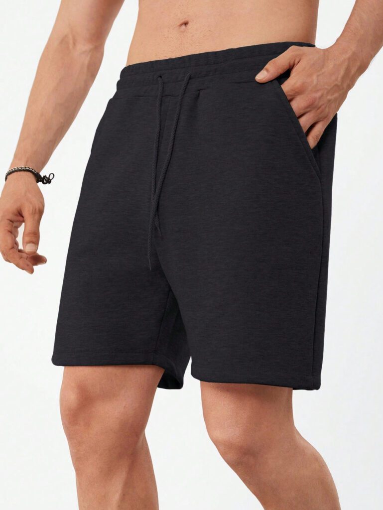 Short à cordon de serrage de taille pour hommes en couleur unie