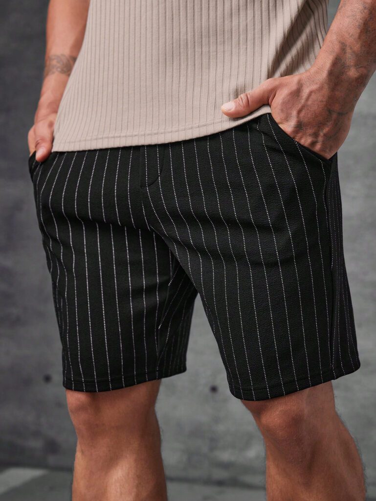 Manfinity Modomio Shorts tricotés rayés pour hommes, noirs unis avec sueur, décontractés urbains